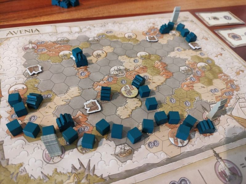Sobald eine ganze Region erkundet wurde, entsteht eine Siedlung, die Ausgangspunkt für weitere Entdeckungen in den nachfolgenden Runden sein kann. Je mehr Siedlungen ihr errichtet, um so größer wird also der Bereich, den ihr erkunden könnt.