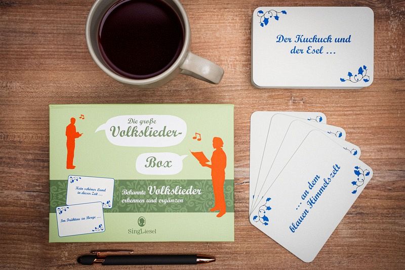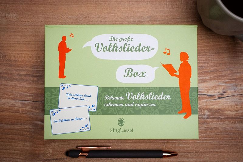 Die große Volkslieder-Box enthält 100 Karten mit Fragen zu den bekanntesten deutschen Volksliedern.Die Spielidee ist einfach und bereitet immer wieder großen Spaß: Auf der Vorderseite der Spielkarten ist beispielsweise ein Ausschnitt aus einem Volkslied abgedruckt. Der fehlende Teil kann erraten und auf der Rückseite nachgelesen werden.Die liebevolle nostalgische Gestaltung der Karten und das XXL-Format fördern die Freude an diesem unterhaltsamen Rate-Spiel.
