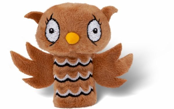 Die Fingerpuppe basiert auf der Gestaltung des Pappbilderbuch-Bestsellers "Die Eule mit der Beule" und ist Teil der neuen Merchandise-Linie zum Trösten, Heilen und Beschützen.