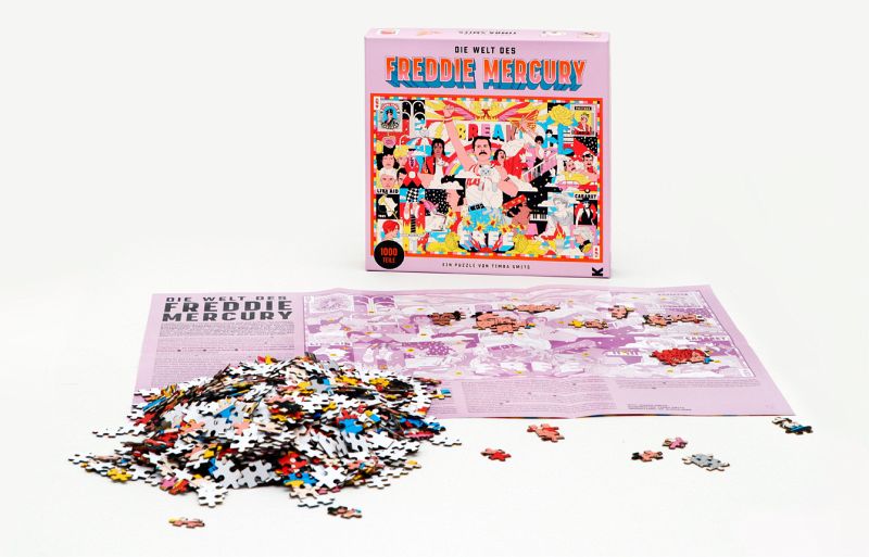Setzen Sie die Welt von Freddie Mercury in diesem Puzzle zusammen, das die Geschichte seines Lebens undseiner Songs in gezeichneten Mini-Szenen erzählt. Von Freddies Kindheit in Sansibar und England über seinen kometenhaften Aufstieg zum Rockstar mit Queen bis hin zu seinem tragischen Tod durch AIDS, gibt es eine ganze Galaxie von Stars, Freund_innen, Liebhabern und Katzen zu entdecken. Freddie wird immer der Champion of the World sein! 1000-Teile-Puzzle zeigt Freddie Mercurys Welt in großartigen Details Finden Sie berühmte Personen, Musiker_innen und Verweise auf seine größten Songs A2-Poster mit vielen Fakten zu Freddies Leben und Werk