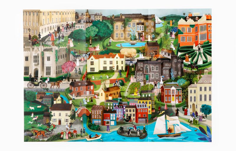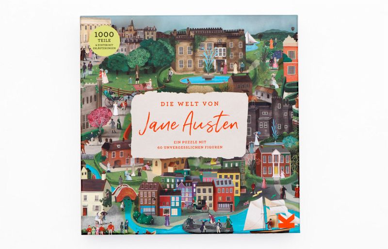 > Zum 250. Geburtstag von Jane Austen > Austens Romane sind zeitlose Klassiker > Enthält Poster mit Informationen zu den dargestellten Figuren, Orten und Personen Herzlich willkommen in der Welt von Jane Austen! Drehen Sie mit Mr. Knightley eine Runde durch den Garten, überraschen Sie Mr. Darcy in Pemberley und fliehen Sie mit Anne Elliot ans Meer. Tauchen Sie ein in die Intrigen, Bälle und Heiratsanträge von Jane Austens Regency-England, während Sie die sanften Hügel und herrschaftlichen Häuser dieses 1000-Teile-Puzzles mit 60 unvergesslichen Figuren und Menschen aus Jane Austens Leben und Werk zusammensetzen.