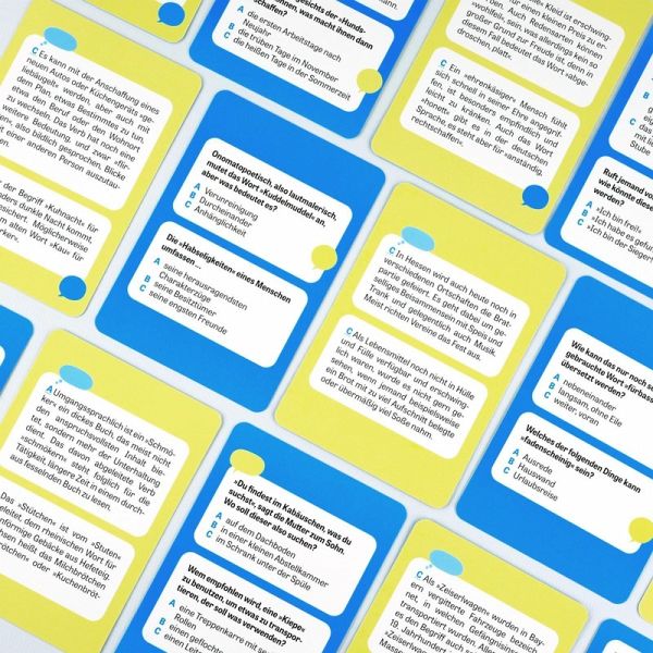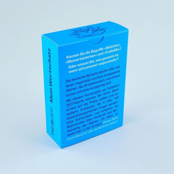 Was verbirgt sich wohl hinter dem Wort »Stütchen«? Welcher Betätigung geht ein »Opticker« nach? Und wozu wird eigentlich ein »Messerbänkchen« verwendet? Die deutsche Sprache ist für ihren großen Wortschatz bekannt. Da ist es nicht verwunderlich, dass es viele deutsche Wörter gibt, die sehr selten verwendet werden oder gar nur regional begrenzt bekannt sind. Viele dieser ungewöhnlichen Wörter sind jedoch äußerst liebenswert und unterhaltsam, zudem verbergen sich hinter ihnen oft erstaunliche Geschichten zu Herkunft und Bedeutung. In diesem Kartenspiel kann das Wissen rund um seltene Wörter erprobt und erweitert werden. 140 humorvolle Fragen und Antworten entführen Sprachbegeisterte in eine Welt der Kuriositäten. Gesammelt wurden die Begriffe und Redewendungen von der »ZEIT« in der beliebten Kategorie »Mein Wortschatz«.