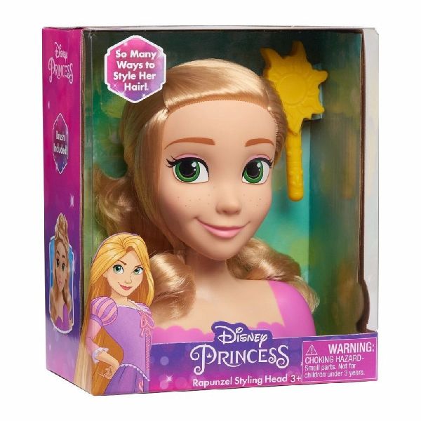 Disney Prinzessin Rapunzel Mini-Styling-Kopf bietet unendlich viele Möglichkeiten, mit dem Haar zu spielen! Rapunzel hat schönes, glänzendes Haar, das sich perfekt zum Bürsten und Stylen eignet. Ihr Kind wird es lieben, die Bürste zu benutzen, um Rapunzels Haare zu stylen!
