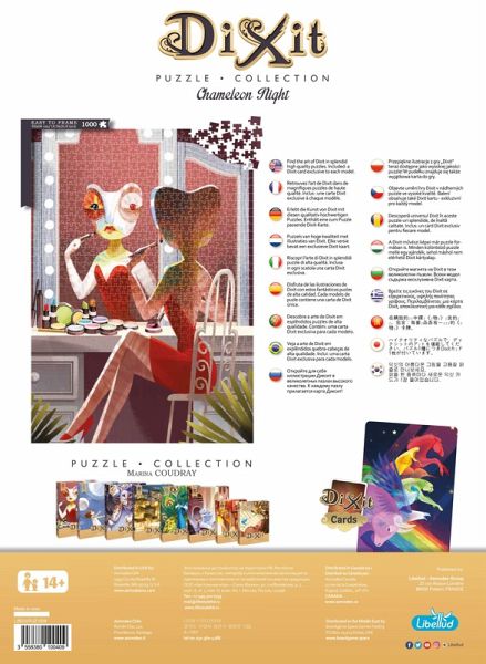 Das 1.000-Teile-Puzzle mit dem MotivChameleon Nightist eines von insgesamt 14 fantasievollen Puzzles aus derDixit Puzzle Collection. Mit diesen qualitativ hochwertigen Puzzles erlebenDixit-Freunde und Puzzle-Fans die traumhafte Kunst des beliebten Familienspiels auf eine neue Art und Weise. Ebenfalls enthalten ist eine neue, zum Puzzle passendeDixit-Karte, die dem Spiel hinzugefügt werden kann.