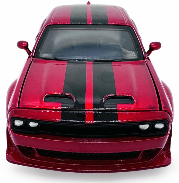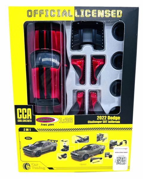 Der Dodge Challenger SRT Jailbreak ist eine Sonderedition des legendären US-Muscle-Cars und steht für maximale Individualisierung und brachiale Leistung. Ausgestattet mit einem über 800 PS starken HEMI-V8 bietet der Jailbreak ein unvergleichliches Fahrerlebnis und puren amerikanischen Fahrspaß ein wahres Monster auf der Straße. JAMARA bringt dieses einzigartige Fahrzeug im hochwertigen Metall DIECAST 1:36 Maßstab in Ihre Sammlervitrine mit vielen kleinen Details, die jeden Fan begeistern werden. Das offiziell lizenzierte Modell überzeugt mit einem detailgetreuen Innenraum und dem markanten Design des Challenger SRT Jailbreak. Die Kabine für Spielfiguren, profilierte Gummireifen und die transparente Windschutzscheibe sorgen für ein authentisches Erscheinungsbild. Mit dem mehrteiligen Custom-Tuning Umbaukit können Sie das Modell nach Ihren Wünschen individualisieren. Türen und Motorhaube lassen sich manuell öffnen und bieten einen Blick auf das beeindruckende Interieur ein echtes Highlight für jeden Sammler. Der Dodge Challenger SRT Jailbreak von JAMARA ist nicht nur ein echter Hingucker für Ihre Vitrine, sondern auch ein Muss für jeden Sammler und Enthusiasten von US-Muscle-Cars.