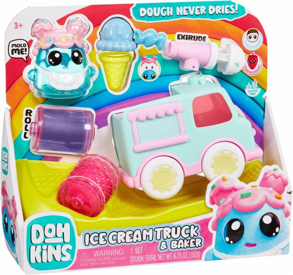 Erschaffe deine eigene Knetwelt und folge der YouTube-Serie! Die glutenfreie, duftende Knete trocknet nicht aus, und die Verpackung dient auch als Form. Das Set enthält einen Ice Cream Truck, eine Figur, Knete, eine Eiswaffelform sowie eine Form zum Ausrollen und Aufbewahren. Ein besonderes Highlight: Die Knete kann durch die Eiswaffel auf dem Dach des Trucks herausgedrückt werden!