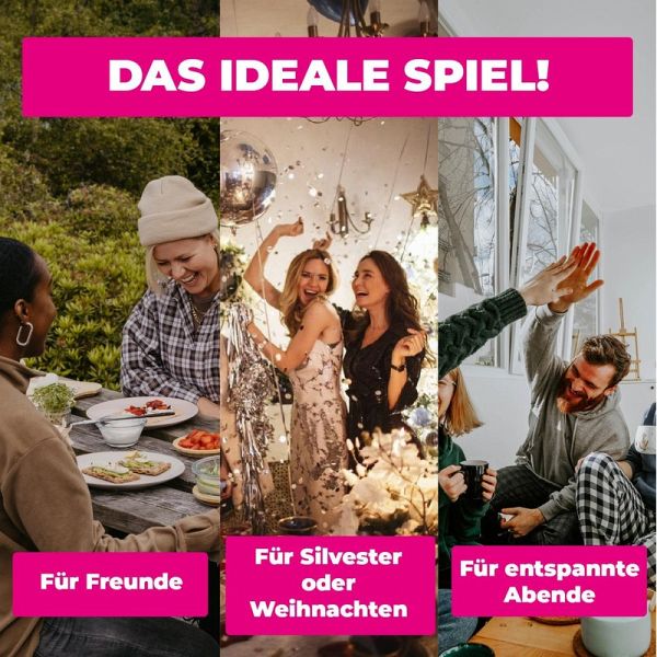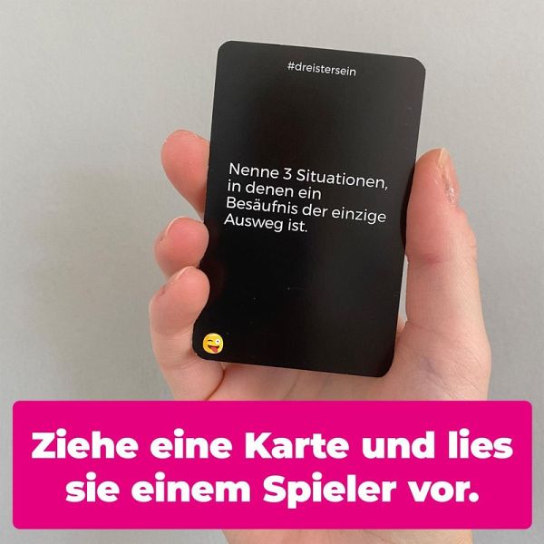 DREISTER ist das Kartenspiel, das mit urkomischen und knallharten Fragen das Eis bricht! Keine lange Zeit zum Nachdenken, lediglich 8 Sekunden um zu antworten! Lock deine Mitspieler aus der Reserve und enthülle ihre schmutzigsten Gedanken mit diesem Gesellschaftsspiel für Erwachsene. UNZENSIERT UND UNGENIERT: Die Partyspiel-Fortsetzung von Dreister bietet 400 NEUE FRAGEN sowie 80 SONDER- und AUFGABENKARTEN, die das Spiel zusätzlich anheizen. Das Originalspiel ist nicht erforderlich, die Varianten ergänzen sich aber perfekt! EINFACHE & GNADENLOSE REGELN: Ein Spieler zieht eine Karte und liest sie seinem Gegenüber vor. Dieser hat 8 Sekunden Zeit um zu antworten! Wenn die Antworten treffend sind, erhält der Spieler 1 Punkt. Ziel: 7 Punkte! BRINGT JEDE PARTY IN SCHWUNG: Ideal für Spieleabende, Junggesellenabschiede, die WG-Party, Weihnachtsfeier, Silvester, Karneval oder als Geschenk! LOKAL UND NACHHALTIG: Gesellschaftsspiele für Erwachsene, designed in Deutschland und gedruckt auf umweltfreundlichem Papier. Außerdem unterstützen wir gemeinnützige Projekte mit 1% unserer Gewinne. Von den Machern von Unverschämt und Little Secret.