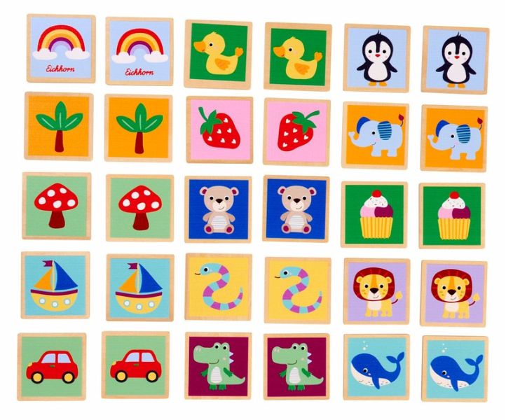 Entdecke die Welt des Lernens mit "Erinnere Dich" von Eichhorn! Unser liebevoll gestaltetes Memo-Spiel ist perfekt für kleine Entdecker ab 3 Jahren. Mit 30 Teilen aus Holz, bietet "Erinnere Dich" endlosen Spielspaß und eine wunderbare Möglichkeit, das Gedächtnis und die Konzentration zu schulen. Die extra abgerundeten Ecken und die leicht zu greifenden Holzteile machen das Memory ideal für kleine Kinderhände. Die bunten Farben und die süßen Tiermotive begeistern und fördern ganz nebenbei die sprachliche Entwicklung. Spielerisch lernen - das ist "Erinnere Dich"! Perfekt für die ersten Schritte in die Welt der Spiele.