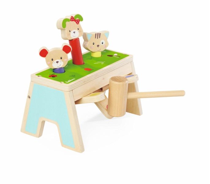 Entdecke das fröhliche Klopfspiel von Eichhorn aus der Friends Linie - das perfekte Spielzeug für kleine Entdecker ab 1 Jahr! Mit den drei bunten Spielflächen und einem Holzhammer bringt dieses Spiel stundenlangen Spaß und fördert gleichzeitig die Feinmotorik sowie die Auge-Hand-Koordination deines Kindes. Sobald eine der drei Figuren heruntergeklopft wird, poppt sie blitzschnell nach oben und fliegt heraus - ein lustiger Überraschungseffekt, der immer wieder für Begeisterung sorgt! Nach dem Herunterklopfen kann dein Kind die Figuren spielend leicht wieder den passenden Farben zuordnen, einstecken und von Neuem beginnen. Das Eichhorn Klopfspiel besteht zu 100 % aus FSC-zertifiziertem Holz und steht für höchste Qualität und Nachhaltigkeit. Lass dein Kind die Welt des Klopfens und Entdeckens erleben - mit dem Friends Klopfspiel von Eichhorn!