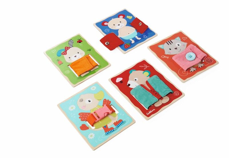 Für kleine Entdecker ab 3 Jahren gibt es jetzt das Eichhorn Lernspiel aus der Friends Linie, das nicht nur die Fantasie, sondern auch die Feinmotorik und die Auge-Hand-Koordination fördert! In diesem liebevoll gestalteten Set findest du 5 Lernbretter in Form süßer Tierfreunde wie Ente, Katze und Bär. Jedes Tier bringt eine neue Herausforderung mit sich: Ob Knopf, Reißverschluss, Klettverschluss, Druckknopf oder Schnalle - hier gibt es viel zu entdecken und auszuprobieren! Deine Kleinen können die Tiere an- und ausziehen und dabei spielerisch wichtige motorische Fähigkeiten erlernen. Gefertigt aus 100% FSC-zertifiziertem Holz und einem Materialmix aus Holz, Stoff und Plastik, steht das Lernspiel für Nachhaltigkeit und Qualität. Mit dem Eichhorn Friends Lernspiel wird jedes Kind zum kleinen Meister im Auf- und Zumachen - und das mit einer Extraportion Spaß!