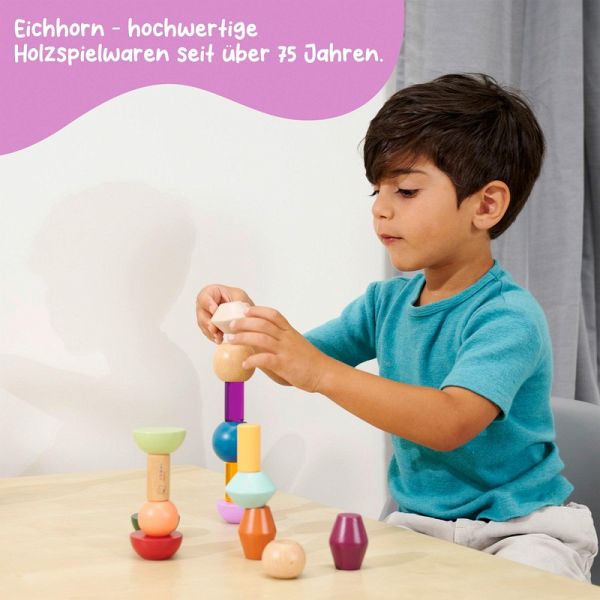 Für diese besonderen geometrischen Bausteine braucht man schon etwas Fingerspitzengefühl. Mit den 16 farbenfrohen Stapel-Perlen lassen sich tolle Türme und Formen bauen. Deine Kinder lernen 5 neue geometrische Formen kennen und werden von den beiden Acrylglasbausteinen begeistert sein. Fast zu schade zum Aufräumen oder wieder umwerfen. Die Montessori Stapel-Perlen bestehen aus 100% FSC zertifiziertem Buchenholz und sind für Kinder ab 3 Jahren geeignet. Lernziele: Kreativität Auge-Hand-Koordination Feinmotorik Formenwahrnehmung Geduld