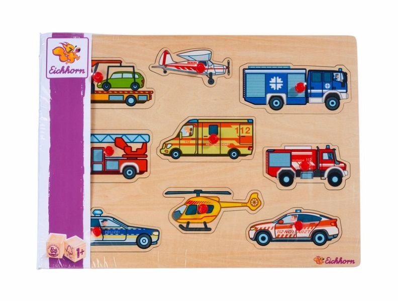 Entdecke das Eichhorn Einsatzfahrzeuge Holzpuzzle - das perfekte erste Puzzle für kleine Entdecker ab 1 Jahr! Mit liebevoll gestalteten Motiven wie Abschleppwagen, Feuerwehr, Polizei, Notarzt und Helikopter wird der Einstieg in die Welt des Puzzelns zu einem wahren Vergnügen. Die griffigen Pins ermöglichen es kleinen Händen, die Teile leicht zu greifen und sicher zu platzieren. Dieses Puzzle fördert spielerisch die Feinmotorik und Konzentration deines Kindes und besteht zu 100% aus FSC-zertifiziertem Holz - für unbedenklichen und nachhaltigen Spielspaß. Die einfache, kindgerechte Gestaltung macht es zum idealen Geschenk, sei es zum Geburtstag oder für gemeinsame Spielstunden. Verschenke Freude und unterstütze die Entwicklung deines Kindes.
