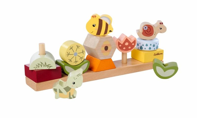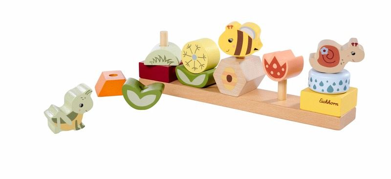 Mit dem liebevoll gestalteten Eichhorn Holz Sortierbrett aus der Bee Happy Linie tauchen Kinder in eine bunte Welt der Formen und Farben ein. Das Set umfasst 13 einzigartige Bausteine, darunter einen fröhlichen Grashüpfer, eine niedliche Schnecke, eine fleißige Biene sowie bezaubernde Blumen- und Blattformen. Die Kleinen können die Bausteine nach Herzenslust auf die stabilen Holzstäbe stecken und dabei spielerisch ihre Feinmotorik und Auge-Hand-Koordination fördern. Hergestellt aus 100% FSC-zertifiziertem Holz, steht das Eichhorn Bee Happy Sortierbrett nicht nur für sicheren Spielspaß, sondern auch für Nachhaltigkeit. Es ist das perfekte Geschenk für kleine Baumeister, ab einem Jahr, die gerne Neues entdecken und dabei ihre motorischen Fähigkeiten entwickeln möchten.
