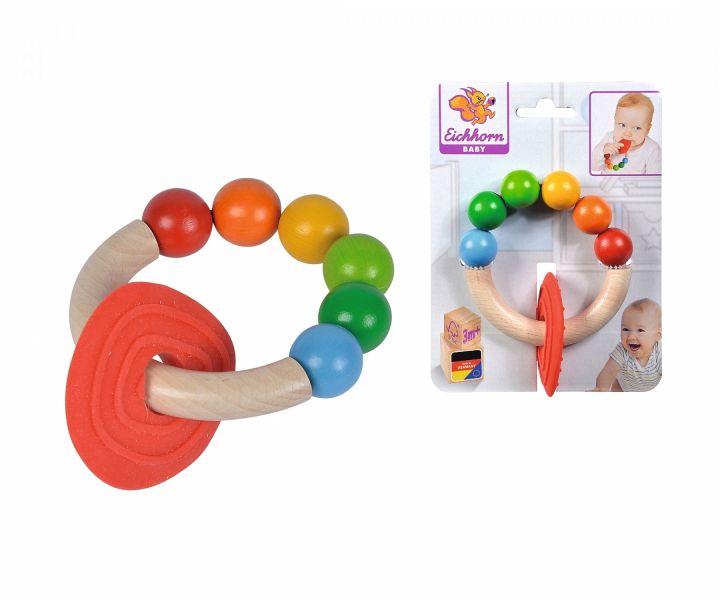 Eichhorn Baby, Greifling mit Beißplatte: Der hochwertige Greifling aus Buchenholz hat unterschiedliche haptische Reize. Die Fühlperlen werden zu einem Sinneserlebnis für die kleinen Händchen und die Beißfläche hilft beim Zahnen. Für die Herstellung des Eichhorn Greiflings wird ausschließlich FSC® 100% Holz aus nachhaltiger Forstwirtschaft verwendet. Dieser Eichhorn Artikel ist Made in Germany. Für Babys ab drei Monaten geeignet.