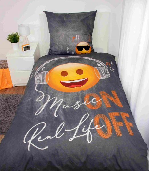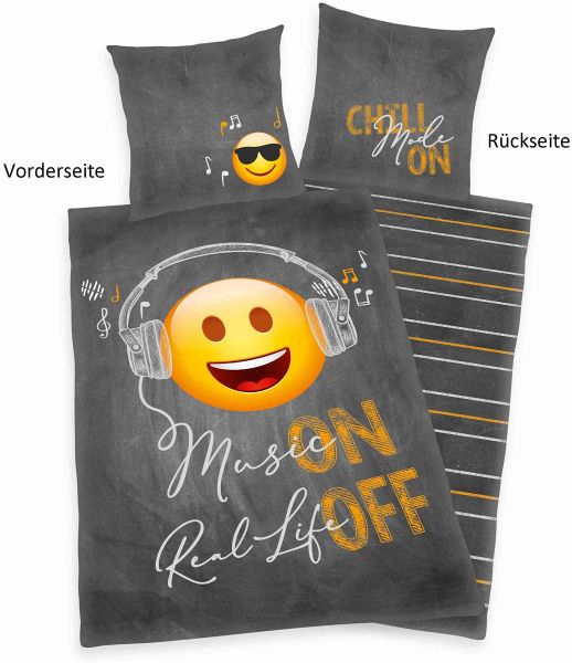 Die atmungsaktive Emot!x Bettwäsche aus 100 % Baumwolle ist das ideale Geschenk für Groß und Klein. Ob für Jungen, Mädchen oder Erwachsene ist die Wendebettwäsche ein echter Hingucker für jedes Schlafzimmer. Zertifiziert nach STANDARD 100 by OEKO-TEX® ist der Bettbezug schadstoffgeprüft und hautsympathisch. Mit den kräftigen Farben, der höchsten Qualität in der Materialverarbeitung und einem leichtläufigen Qualitätsreißverschluss haben Sie lange Spaß an dem Bettwäsche-Set.