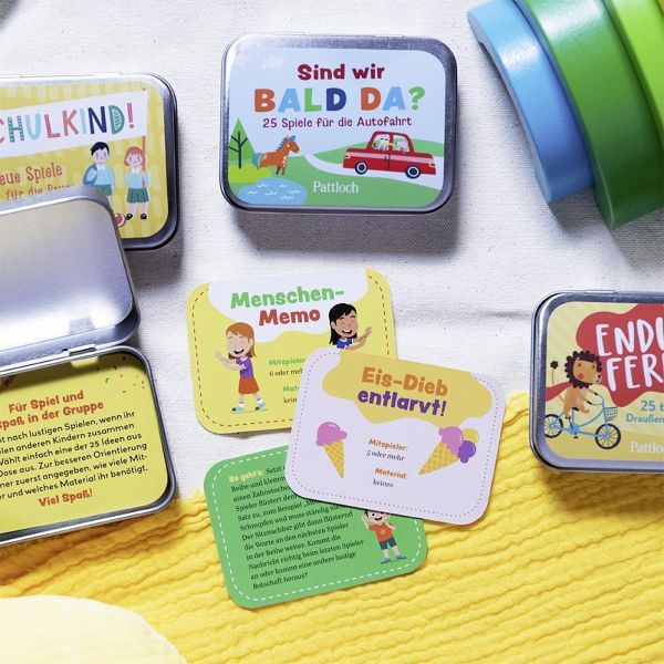 Ferien - das vielleicht schönste Wort der Welt! Endlich Zeit für Spiel, Spaß und Abenteuer. Die Metalldose mit 25 lustigen Spielideen für die freie Zeit hilft dabei, das Beste aus der Ferienzeit herauszuholen. Ob beim Schattenfangen, beim Laufen über den selbstgebauten Barfußpfad oder bei der Wasserschlacht, die originellen Spiele machen die Ferienzeit zur Erlebniszeit. Die Spiele eignen sich sowohl für kleinere, als auch für größere Gruppen. Es wird wenig Zusatzmaterial benötigt, sodass die Kinder gleich loslegen können.