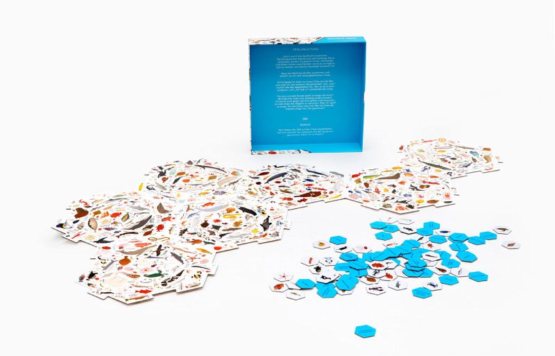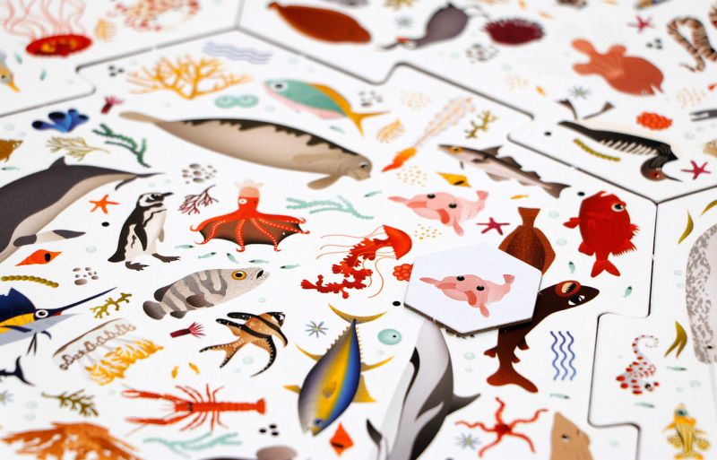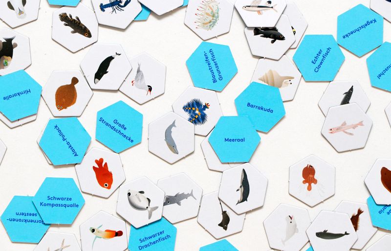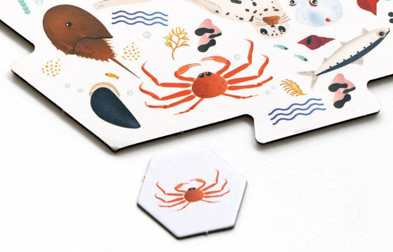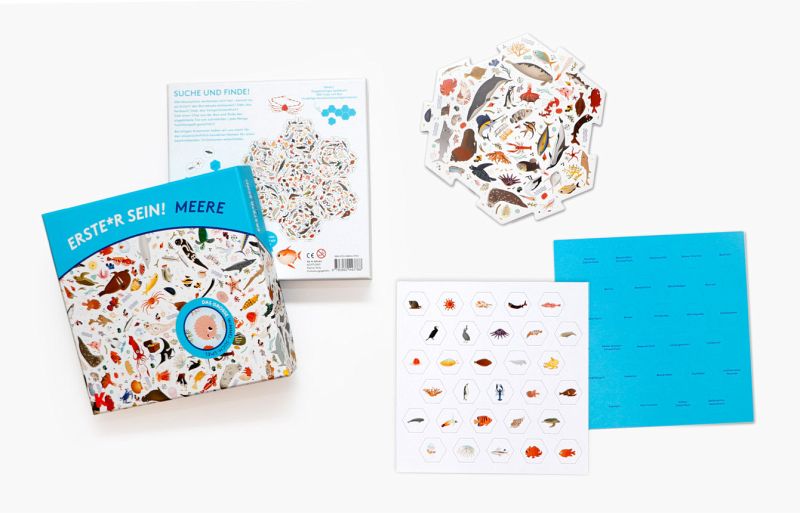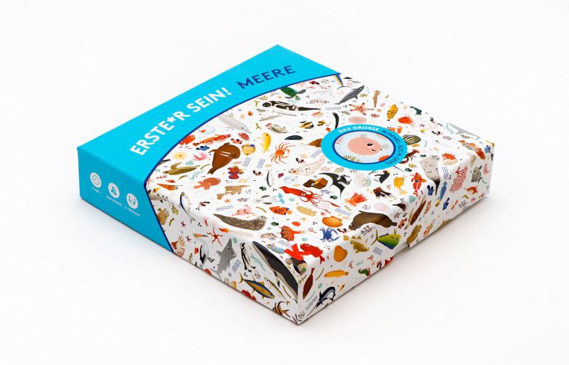 Dreihundert Meeresbewohner tummeln sich auf dem Spielbrett dieses ausgeklügelten Spiels. Ziehe einen Spielstein aus der Box und finde als Erste(r) den abgebildeten Meeresbewohner auf dem Wimmelbrett! In einer dreieckigen Schachtel und mit einem doppelseitig illustrierten, sechseckigen Spielbrett kann gar keine Routine aufkommen, denn das Spielbrett konfiguriert sich jedes Mal neu! Diese lustige und herausfordernde Spielidee ist einfach zu verstehen, aber Vorsicht - es macht Erwachsene wie Kinder gleichermaßen süchtig!