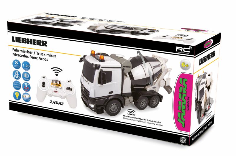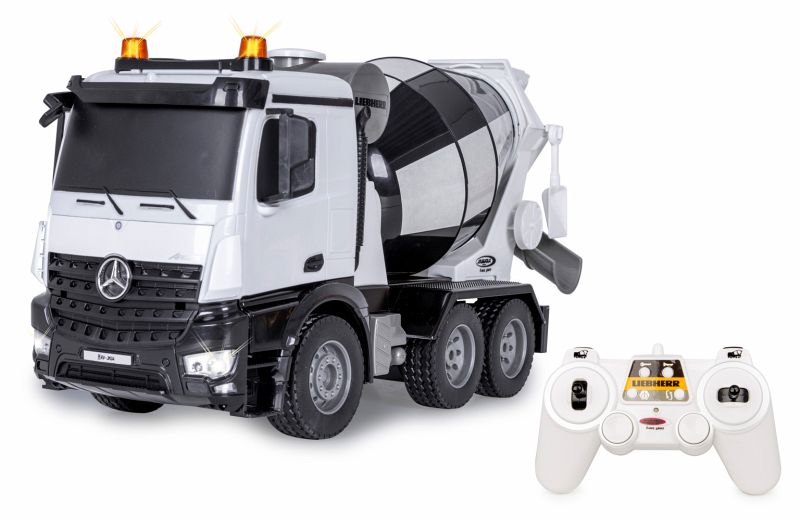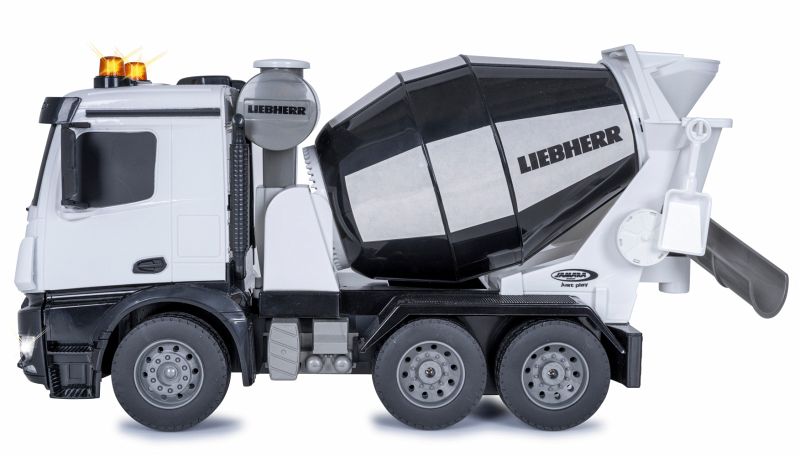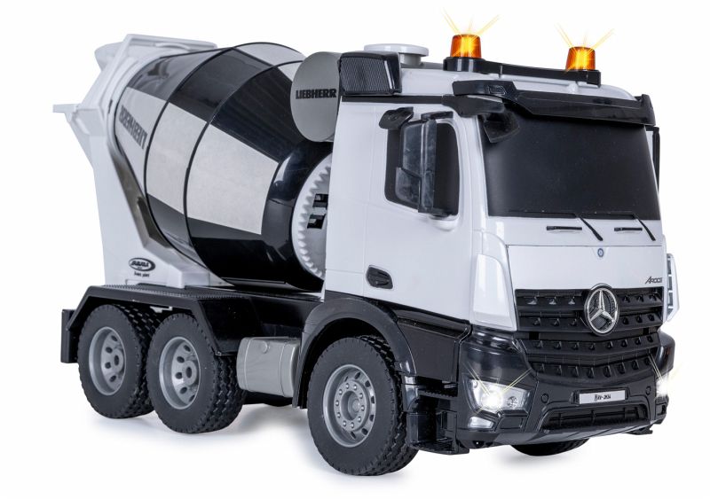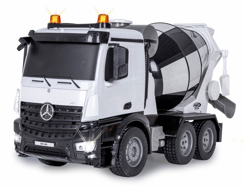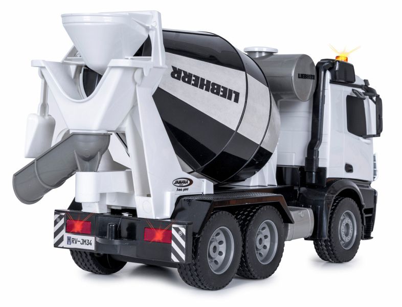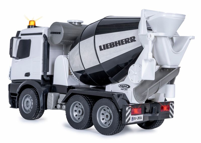 Der Betonmischer darf auf keiner Baustelle fehlen! Deshalb hält Jamara für die kleinen Bau-Ingenieure den offiziell lizenzierten Betonmischer Arocs von Mercedes-Benz bereit. Für ein realistisches Spielvergnügen sorgen die Mischtrommel, drehbar in beide Richtungen, der Motor- und Rückfahrwarnsound, gelbe LED Signallichter und die Lichtfunktion. Der Starke Helfer von Mercedes-Benz fährt mit 4-Radantrieb und verfügt über Programmierungen, wie der Wiederholfunktion, eine Autoabschaltfunktion, der Demo-Funktion und eine Lern-Funktion um bestimmte Arbeitsabläufe automatisch auszuführen. Unverzichtbar auf jeder Baustelle, der Mercedes-Benz Arocs von JAMARA.