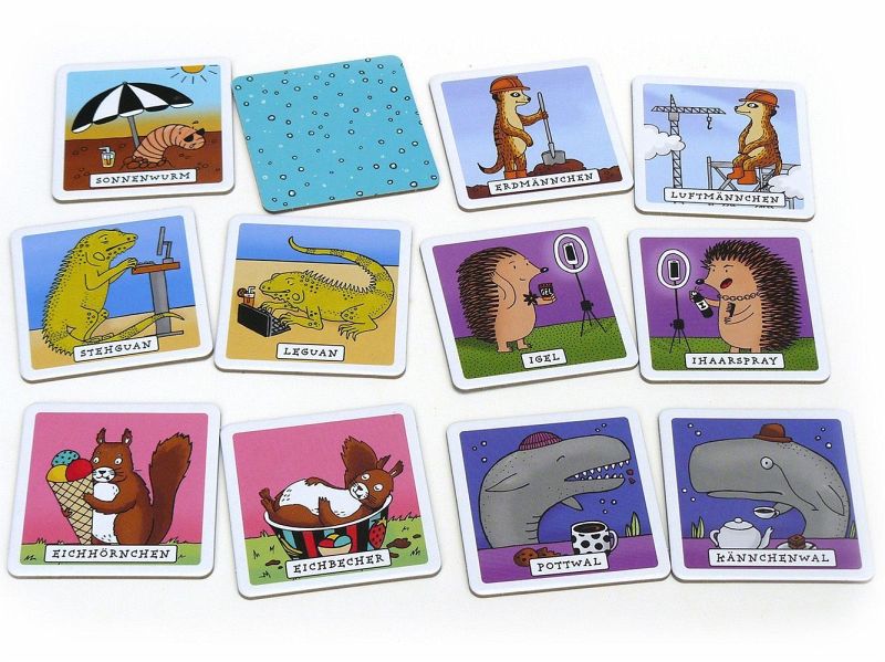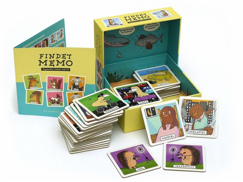 Das tierische Memospiel mit 26 Paaren von Pinke Distel Mammut steht auf dem Sprungbrett, Mamangst zaudert am Beckenrand. Erdmännchen arbeitet am Boden, Luftmännchen auf dem Gerüst. Bei diesem witzigen, anregenden und originell gestalteten Memospiel gehören Gegensatzpaare zusammen: Hier braucht der Leguan den Stehguan und der Hecht sucht den Unhecht. Antilope und Prolope diskutieren, und Schwein und Schbier zechen miteinander. Alle müssen bei diesem Memo helfen, für Lama, Gorilla & Co die bisher unentdeckten Partner zu finden. Affengeile Illustrationen gepard mit geniaalem Wortwitz, Lachsgarantie inklusive!