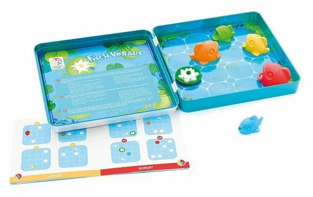 Kannst du es schaffen, dass jeder Fisch seinen kleineren Artgenossen hinterherschwimmt? Wichtig ist für die farbfrohen Flossenfreunde auch die korrekte Plazierung der Seerose. Alle Teile sind magnetisch, so dass nichts herausfallen kann.