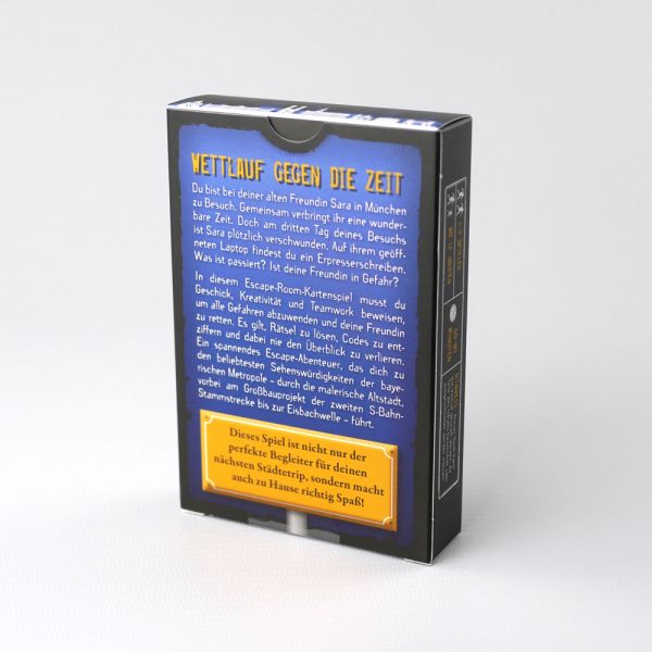 In einem handlichen Kartenformat verwandelt dieses Rätselspiel sowohl eine Reise nach München als auch einen gemütlichen Spieleabend in ein spannendes Escape-Erlebnis.