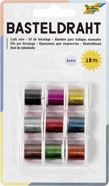 Basteldraht-Set: 9 Spulen à 2 m, farbig sortiert. Ideal geeignet für verschiedene Bastelarbeiten, Gestecke und Blumengebinde.