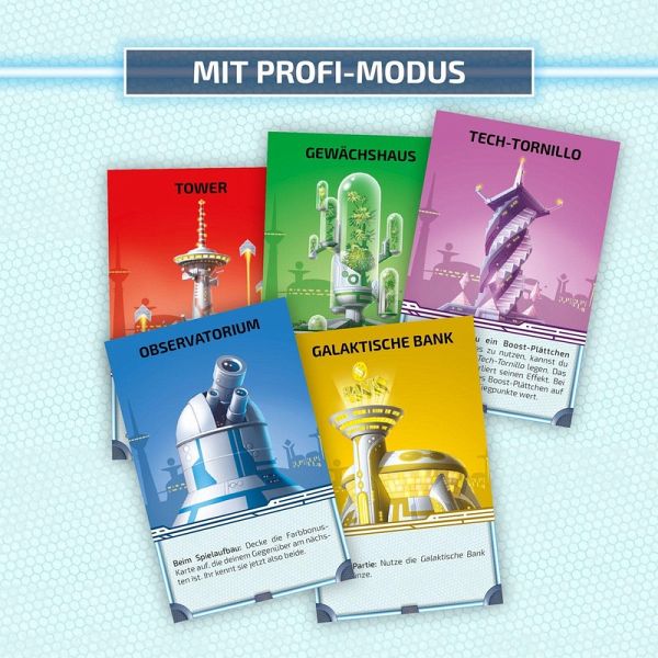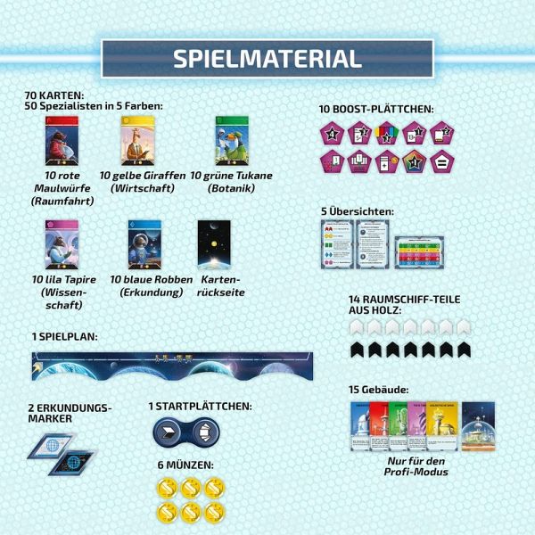 Welcher Heimatplanet wird das neue Zentrum des Universums? Höchste Zeit, das in einem Wettstreit zu klären! Als Kapitäne brechen zwei Spielerinnen und Spieler mit ihren Raumschiffen ins All auf. In diesem Duell-Spiel gilt es, die fähigsten Köpfe der Galaxis zu rekrutieren, um den eigenen Heimatplaneten voranzubringen. Runde für Runde werden dazu vier fremde Planeten angesteuert - doch nur, wer zuerst ankommt, hat die Wahl. Wer spezialisiert sich auf Technik, Wirtschaft oder Wissen? Wer lieber auf Spezialaurüstung oder Botanik? Ein taktisches Spiel mit einem besonderen Kartenauswahl-Mechanismus. Eine Herausforderung mit kniffligen Entscheidungen und großer Spieltiefe für genau zwei Spielerinnen und Spieler ab zehn Jahren, illustriert von dem ukrainischen Illustrator Denis Martynets.