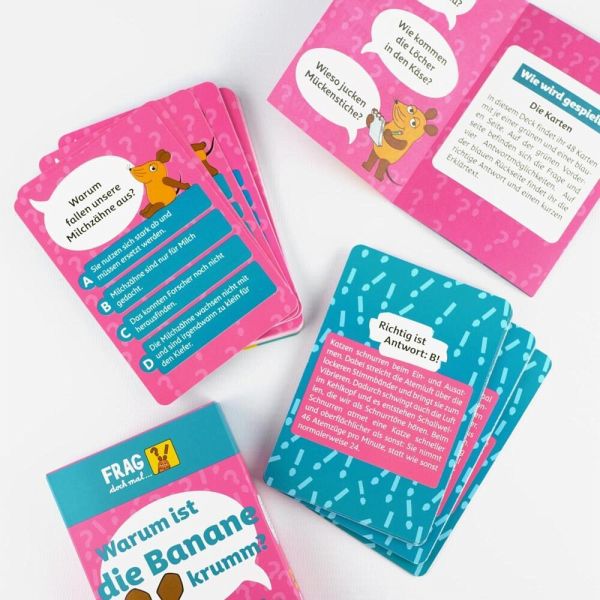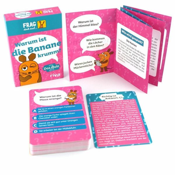 Warum ist der Himmel eigentlich blau? Und wie kommen die Löcher in den Käse? Hat die Maus sie da etwa hineingefressen? Das wohl nicht, aber sie kann euch helfen, auf all die ungelösten Fragen, die ihr neugierigen Spürnasen euch stellt, eine Antwort zu finden. Die Maus weiß auch richtig viel und kann euch spannende, neue Sachen über verschiedenste Themen wie Technik, Tiere und Naturphänomene erklären. Zu jeder Frage habt ihr vier Antwortmöglichkeiten, aber nur eine ist richtig. Wisst ihr so viel wie die Maus und könnt jede Frage richtig beantworten? Wenn ihr nicht alles wisst, ist das gar nicht schlimm! Dafür ist die Maus da. Sie kann euch die Antwort auf der Kartenrückseite ganz verständlich erklären. Für neugierige und wissensdurstige Kinder ab 8 Jahren.