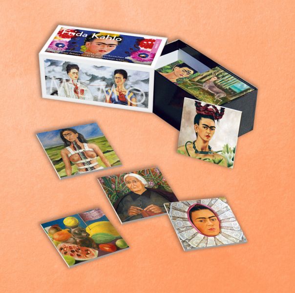 36 Details aus den beeindruckendsten Gemälden aus ihrem 143 Bilder umfassenden Werk sind in diesem Memo versammelt. Tauchen Sie ein in die Bildwelten der Mexikanerin. Hier finden Sie ihre berühmten Selbstporträts und farbenfrohe Stillleben, geliebte Haustiere wie Papageien, Hunde und Äffchen genau wie Skelette, anatomisch korrekte Herzen, Tränen und bunte Kleider. Dieses Spiel kombiniert Unterhaltung mit Kunstgenuss und ist fast zu schön, um es nur zu verschenken!