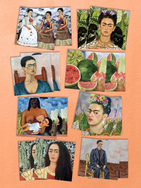 Die mexikanische Malerin Frida Kahlo (1907-1954) ist die berühmteste Künstlerin der Welt. Bis heute fasziniert uns die rätselhafte Schönheit ihrer eigenwilligen Gemälde. In leuchtenden Farben verarbeitete sie - symbolisch verschlüsselt - oftmals ihr eigenes schillerndes und tragisches Leben. In diesem Gedächtnisspiel lernen Sie das Werk der Kunstikone näher kennen. Entdecken Sie 36 Details aus den beeindruckendsten ihrer Gemälde, darunter zahlreiche der berühmten Selbstporträts und farbenfrohen Stillleben.
