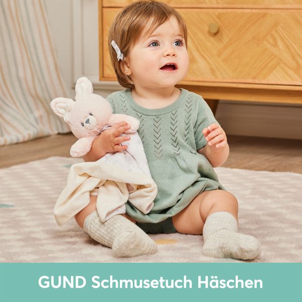 GBB Recycled Schmusetuch Häschen Babys und Kleinkinder haben ein großes Kuschelbedürfnis, während für Eltern die Sicherheit ihres Lieblings an erster Stelle steht. Daher ist es wichtig bei Spielzeugen für die Kleinsten bei der Qualität keine Abstriche zu machen. Die Marke GUND steht seit über 120 Jahren für hochwertige, langlebige Plüschprodukte mit kindgerechtem Design. Eltern können darauf vertrauen, ihren Kindern damit etwas Gutes zu tun und die Entwicklung zu fördern. Das Schmusetuch Häschen bietet neben jeder Menge Kuschelspaß unterschiedliche taktile Erlebnisse, die die Entwicklung des Tastsinns unterstützen, und es lädt zum Greifen und damit Trainieren der motorischen Fähigkeiten ein. Da Tier und Tuch aus 100% recyceltem Kunststoff hergestellt ist, ist auch an die Umwelt gedacht, was für Eltern wichtig ist, die auf Nachhaltigkeit wert legen. Das Schmusetuch ist auch als Variante mit Hündchen erhältlich. Ebenfalls im GUND Portfolio gibt es Häschen und Hündchen auch als klassische recycelte Plüschtiere ebenso wie einen Teddybär. Inhalt: 1 Schmusetuch, ca. 25 cm, aus 100% recyceltem Material Maße: 17,78 x 19,05 x 8,89 cm