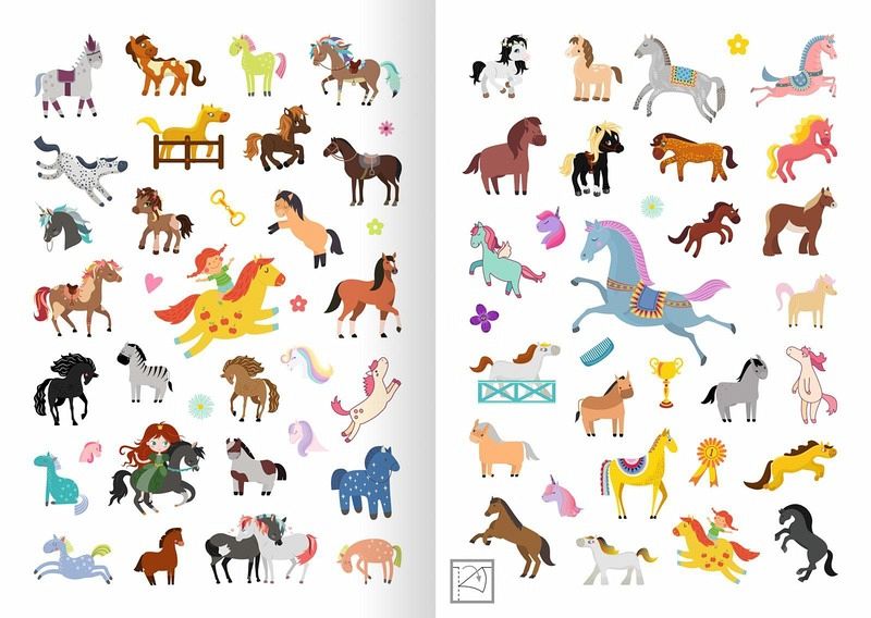 In diesem Heft findest du viele zauberhafte Glitzersticker rund um die Welt der Pferde. Ob süße Ponys, Fohlen, Schimmel, Einhörner oder Reitzubehör - hier findet jeder Pferde-Fan sein Lieblingsmotiv.