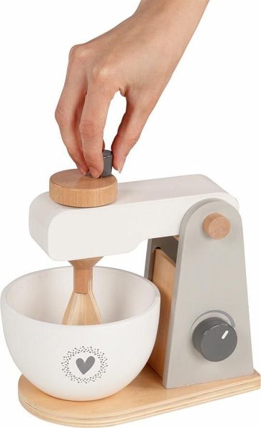 Der Mixer im modernen Puppenküchendesign bietet nicht nur viel für das Auge, er überzeugt auch in seiner alltagstauglichen kindgerechten Funktionalität.