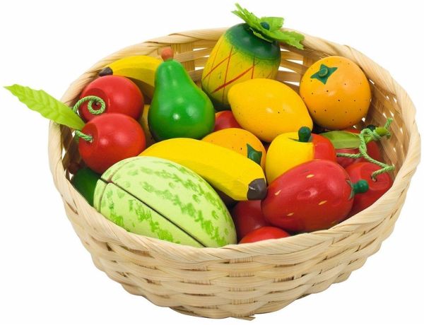 Ein Korb gefüllt mit Obst - die ideale Bestückung für den Marktstand (Art. 51808) oder den Kaufmannsladen (Art. RA201).