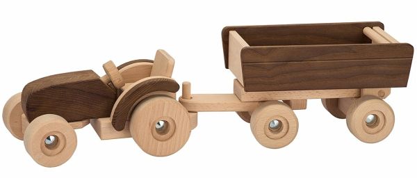 "Mit dem Traktor aus der neuen Produktlinie goki nature und seinem Anhänger mit Kippfunktion geht die Arbeit spielerisch von der Hand. Hochwertiges Massivholz, erstklassige Verarbeitung, Farbabstufungen durch spezielle, aufwendige thermische Holzbehandlung das sind die Qualitätsmerkmale aller goki nature- Spielzeuge! Holzspielzeug in seiner natürlichen Ausprägung, kinderfreundlich designet und altersgerecht funktional kann soo viel Spielfreude in das Kinderzimmer bringen. "
