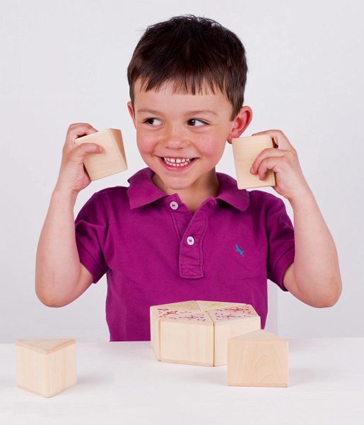 Finde durch ausprobieren 2 Teile die vom Klang her identisch sind. Das Spiel fördert die sensiblere Wahrnehmung von Geräuschen.