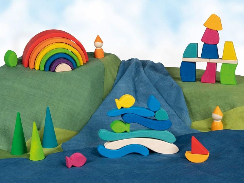 Die liebevoll gestalteten Holzbausteine werden aus Ahornholz gefertigt und sind Made in Europe. Die feine Lasur lässt die Maserung des Holzes noch erkennen. Mit goki evolution entdecken die Kinder das kreative und freie Spiel. Und so erschaffen sie vielleicht eine Wasserwelt, aber vielleicht ist es auch ein Berg oder ganz was anderes. Ein Stapel- oder Legespiel voller Möglichkeiten.