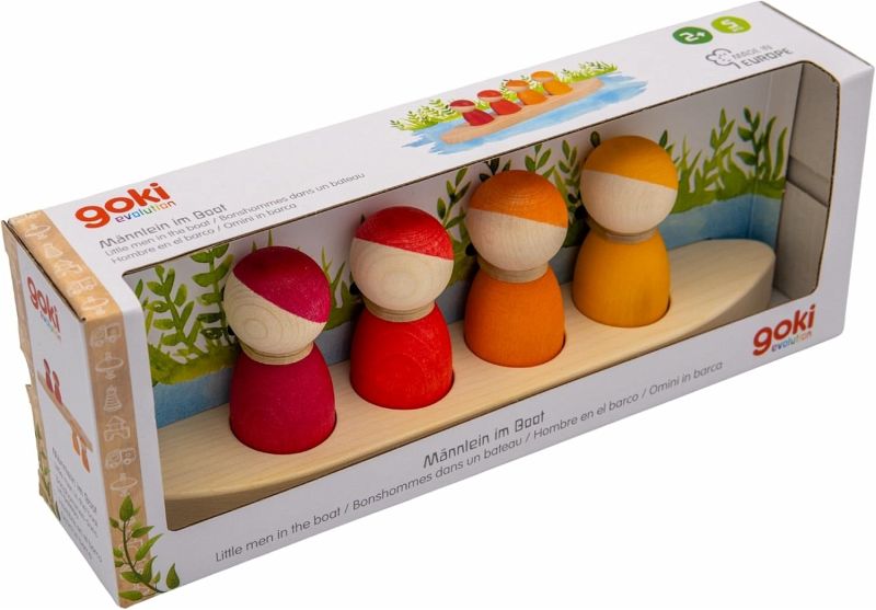 Die liebevoll gestalteten Figuren werden aus Ahornholz gefertigt und sind Made in Europe. Durch ihr neutral gehaltenes Äußeres regen sie die Phantasie an und sind bestens geeignet für freies Spielen - ihren Charakter bekommen sie durch ihre jeweils individuelle Holzstruktur und die leuchtende Lasierung. Wollen die vier Freunde aus Holz mit ihrem Boot ankern, findet sich mit goki evolution eine Welt voller Möglichkeiten für kleine Abenteurer: ein Besuch im Zwergenhaus oder doch vielleicht ans Ende des Regenbogens?