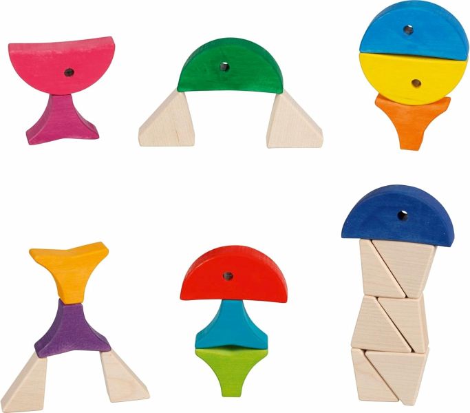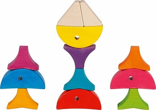 Mit den 24 Holzbausteinen von goki evolution lassen sich neben Fischen auch noch phantasievolle Mandalas legen oder gar Segelschiffe bauen. Der Erschaffung zauberhafter Welten sind keine Grenzen gesetzt.