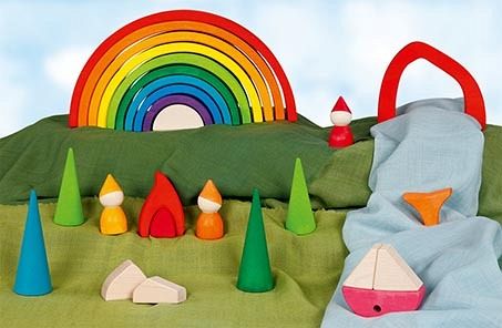 Mit diesem fröhlichen Regenbogen aus Ahornholz aus der goki evolution Serie lässt es sich stapeln und sortieren, während spielerisch Größen, Reihenfolgen und Farben gelernt werden. Dem Erbauen von zauberhaften Welten im offenen Spiel sind keine Grenzen gesetzt - einfach ein Klassiker unter den Holzspielzeugen.