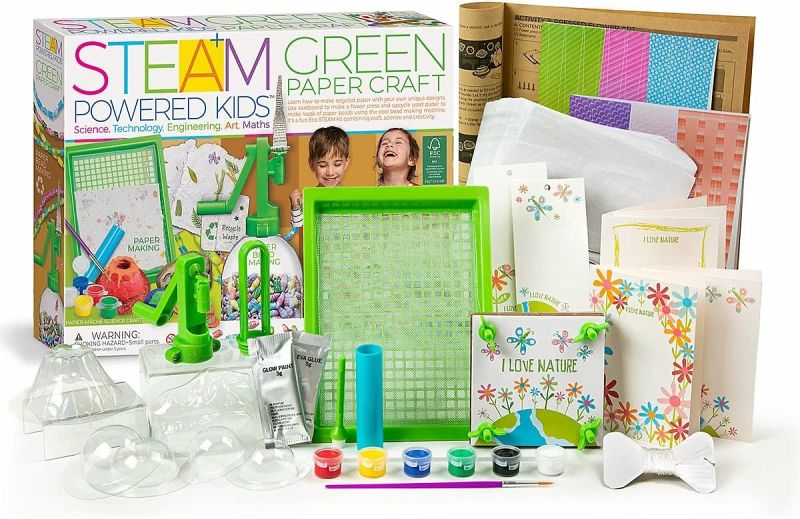 Lerne, wie du Recyclingpapier mit deinen eigenen einzigartigen Designs gestalten kannst. Verwende Pappe, um eine Blumenpresse herzustellen und recycle Altpapier, um mit der coolen Perlenmaschine jede Menge Papierperlen zu machen. Dieses Set verbindet Handwerk mit spannender Wissenschaft und viel Kreativität!