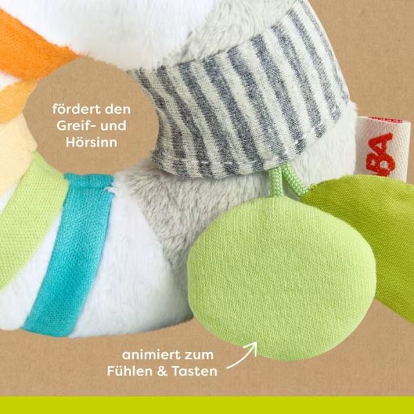 Kuschlig weich und ein Babys erster Freund: Das ist der HABA Greifling Zebra! Er begleitet Babys auf die alltäglichen Entdeckertouren und hält dabei selbst eine kleine Überraschung bereit: Wird er geschüttelt, erklingt dank Rassel ein lustiges Geräusch. Wow! Gleich nochmal!