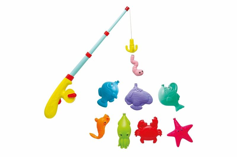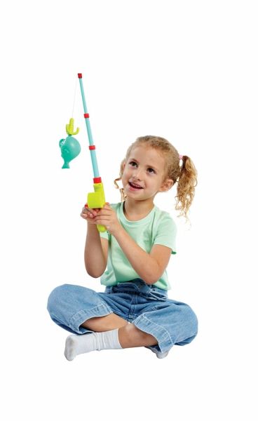 ausziehbare Angelrute mit Automatikfunktion, Rute Länge 39cm, 7 Meerestiere + 1 Köder, 1 Netztasche ab 18 Monaten