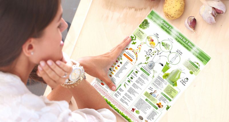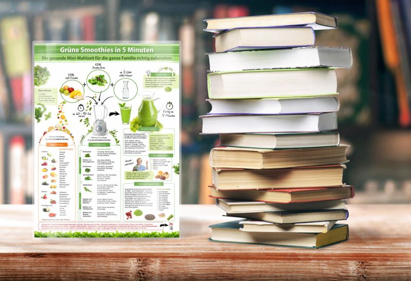 Die Beschreibung im Einzelnen: Grüne Smoothies in 5 MinutenGrüne Smoothies bringen jede Zelle Ihres Körpers zum Jubeln!Das Geheimnis des Wundergetränks steckt in dem hohen Anteil der grünen Blätter, die mehr Nähr- und Vitalstoffe enthalten als jede andere Nahrungsmittelgruppe. Die vielen Vitamine, Mineralstoffe und Antioxidantien bringen neue Energie und Kraft, stärken das Immunsystem, erfrischen Haut und Haare und verbessern sogar nachweislich ihre Laune. Und die Smoothies sind nicht nur gesund, sondern auch lecker.Sie schmecken sogar Kindern gut.In weniger als 5 Minuten servieren Sie sich und Ihrer Familie die pure grüne Gesundheit aus dem Glas. Damit Sie das potente Getränk richtig zubereiten, bietet unsere neue Wissenskarte "Grüne-Smoothies in 5 Minuten" eine komplette Schritt-für-Schritt-Anleitung, mit allem, was Sie benötigen, um sofort loszulegen. Und das auf nur zwei Seiten.Mit seinem konzentrierten Wissen, übersichtlich und liebevoll gestaltet, beantwortet Ihnen die Wissenskarte alle wesentlichen Fragen: - Welches Obst ist am besten für die grünen Smoothies geeignet? - Welches Blattgrün kann man kaufen und welches kann man selber sammeln? - Was sollten Sie auf garkeinen Fall in den Smoothie tun? - Welches sind beliebte Kombinationen, die den Smoothie besonders lecker machen? - Wie süßt man den Smoothie auf gesunde Weise? - Welches Superfood kann man dem Smoothie hinzufügen, um ihn noch weiter aufzuwerten? - Wie können Sie optimal für den Smoothie einkaufen? - Welche Möglichkeiten gibt es für mehrköpfige Familien bei der Herstellung der Smoothies Geld zu sparen, ohne dabei gleichzeitig an der Qualität zu sparen. - Worauf müssen Sie beim Kauf eines Mixers besonders achten? - Bei welchem Obst und Fruchtgemüse sollten Sie die Kerne, das Kerngehäuse und die Schale mitverwenden? - Wie finden Sie das richtige Verhältnis zwischen Obst- und Grünanteil? - Wie viele Smoothie dürfen Sie trinken? - Wann sollte man den Smoothie trinken? - Sollte man den Smoothie kalt oder warm trinken? - Wie kombinieren Sie Ihren Smoothie mit den restlichen Mahlzeiten? Und zu guter Letzt erfahren Sie auch, wie Sie Ihren grünen Powerdrinks optisch ansprechend dekorieren. Denn das Auge isst bzw. trinkt schließlich mit.++++++++++++++++++++++++++++++++++++++++++++++++++++++++++++++++++Lust auf mehr Inspiration und Wissen?Hoher Nutzen auf wenig Raum: Alle unsere Wissenskarten und Poster sind immer:- verständlich - kompakt - übersichtlich - praxisnah - alltagstauglich - zeitsparend - spickzettelmäßig und langlebig durch 500 micron Laminierung. Mehr spannende Lern- und Wissenskarten sowie Posterzu vielen aktuellen Themen finden Sie auf unserer Homepage www.futurepacemedia.de