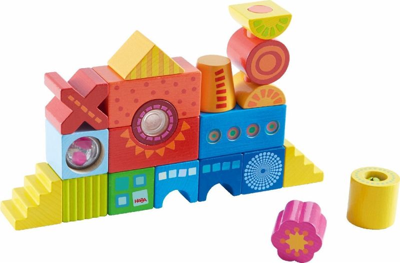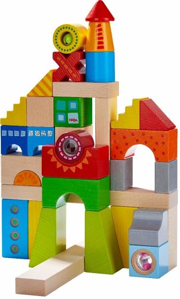 Mit den farbenfrohen Bausteinen Kunterbunt von HABA bauen sich kleine Stapelmeister die Welt immer wieder so, wie sie ihnen gefällt. Türme, Häuser oder kleine Fantasieschlösser die vielen Farben und Formen beflügeln die Fantasie und lassen immer neue imposante Bauwerke entstehen. Glöckchen, Durchguck oder Klapperkugel sorgen für besondere Highlights in den bunten Bauwerken. Und überall gibt es etwas zu schauen, zu hören oder zu erfühlen. So wird das Stapeln schnell zur Entdeckungsreise für die Sinne und fördert spielerisch Feinmotorik und Auge-Hand-Koordination. Die 21 Bausteine Kunterbunt sind ein hochwertiges Holzspielzeug von HABA und ein tolles Geschenk für Kinder ab 1,5 Jahren.