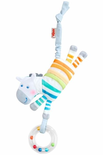Schon einmal mit einem Zebra abgehangen? Nein? Dann wird es höchste Zeit! Dieser lustige Spielgefährte folgt Babys überall hin und lässt sich dank praktischer Klettschlaufe kinderleicht an Buggy, Babyschale oder Bettchen befestigen. Das akustische Highlight: Der Rasselring weckt die Neugier in den kleinen Weltentdeckern.