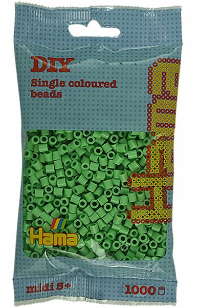 Bügelperlen sind ein ideales kreatives Spielzeug für Kinder ab 5 Jahren. Das Spielen mit den Perlen fördert Kreativität, Farbempfinden und Koordination von Augen und Hand. HAMA, Marktführer im Bereich Bügelperlen überzeugt durch eine hohe Produktqualität, ein umfangreiches Programm in vielen Preislagen und interessante Neuheiten in jedem Jahr. HAMA bietet eine große Auswahl bei den Farben: hier sind es Perlen in Apfelgrün.