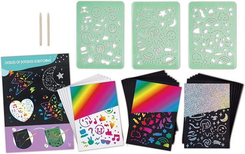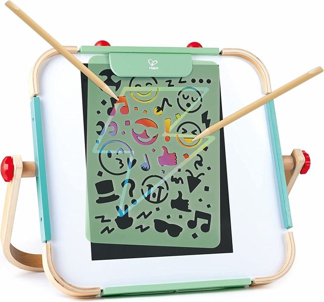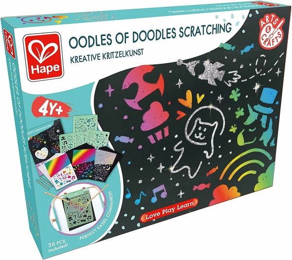 Mit diesem fantastischen Kratzbilder-Set erreicht die Kritzelkunst ein ganz neues Niveau! Einfach die Schablonen auf die beigefügten Kratzbilder legen und mit einem Holzstift loskratzen, um verschiedene Farbschichten darunter zum Vorschein zu bringen! Inklusive Poster mit nützlichen Tipps und Anregungen. Unsere Hape Staffeleien können wunderbar mit diesem Set verwendet werden.