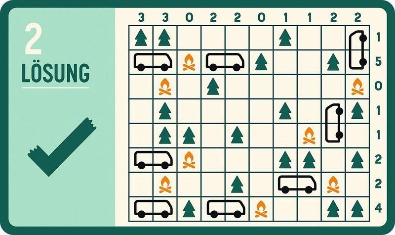 "Logikrätsel mit Suchtfaktor"- Kurzweilige und praktische Rätsel für unterwegs im optisch ansprechenden Design- 40 wiederbeschreibbare Karten mit Wegwischstift- Für alle Rätselinteressierte jeden AltersMit diesen 40 Rätseln aktiviert man das logische Denken. Die Camper sollen um die Lagerfeuer platziert werden, dabei geben die Zahlen am Rand Hinweise auf die richtige Position. Hindernisse auf der Karte erschweren die Positionierung. Es gibt - von leicht bis schwer - drei unterschiedliche Schwierigkeitsgrade.