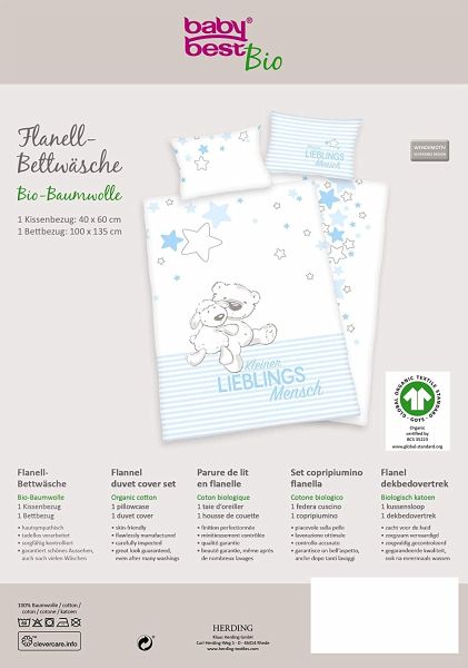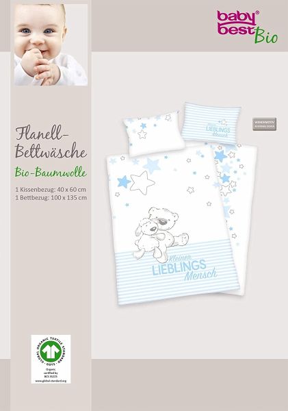 Hier verbinden sich nachhaltig hergestellte Bio-Baumwolle und hautsympathische Qualität mit detailreichen und spannenden Motiven. Die Wendebettwäsche aus kuschelweichem Flanell eignet sich hervorragend für kalte Monate und ist auf die zarten Ansprüche sensibler Babyhaut abgestimmt. Dank der kompakten Größe ist die Kleinkinderbettwäsche ideal für Reise-, Gitter- und Juniorbetten oder für das erste große Bett. Das niedliche Bärchen-Motiv mit der Aufschrift "Kleiner Lieblingsmensch" beschert Ihrem Nachwuchs im Zusammenspiel mit der hohen Qualität zauberhafte Träume bei Tag und Nacht. Zugleich macht es die bequeme Bettwäsche zu einem echten Blickfang in jedem Kinderzimmer und zum idealen Geschenk für Jungen und Mädchen.